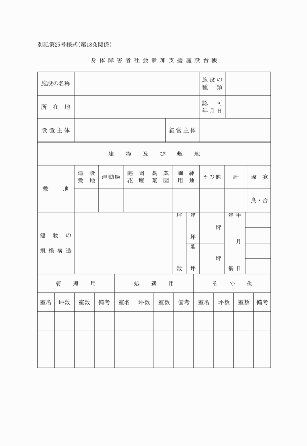 (1) 身体障害者社会参加支援施設台帳 別記第25号様式