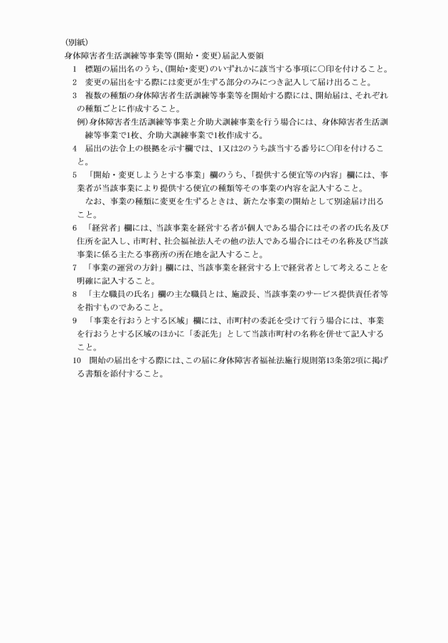 第16条 法第26条第1項及び第2項の規定による届出は、別記第23号様式の身体障害者生活訓練等事業等(開始・変更)届によるものとする。