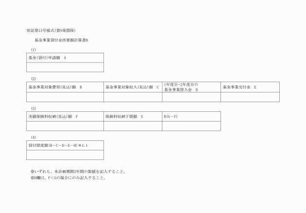 (1) 基金事業貸付金所要額計算書B(別記第13号様式)
