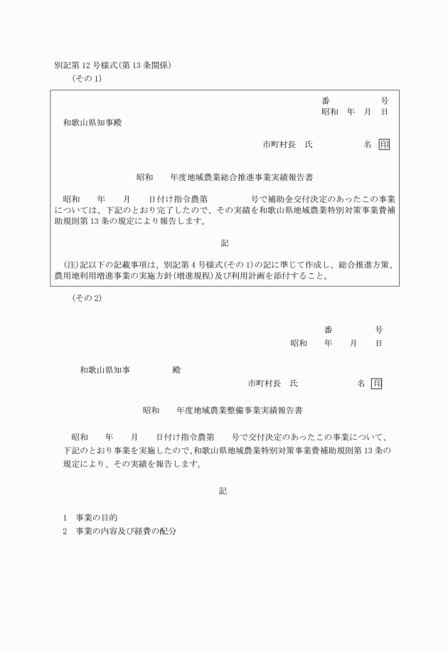 第9条 事業施行者は、当該指令を受けた年度の12月末日現在における事業遂行の状況報告書(別記第8号様式)を1月15日までに知事に報告しなければならない。