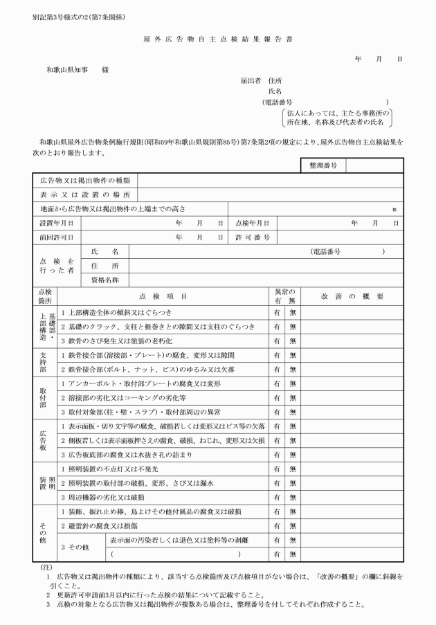 (3) 屋外広告物自主点検結果報告書(別記第3号様式の2)