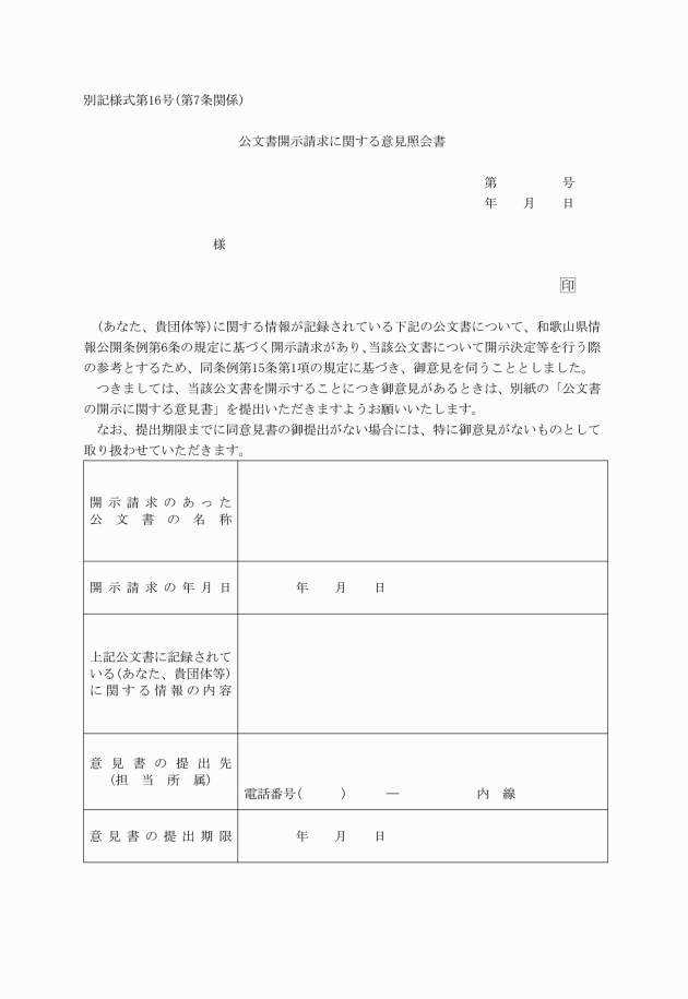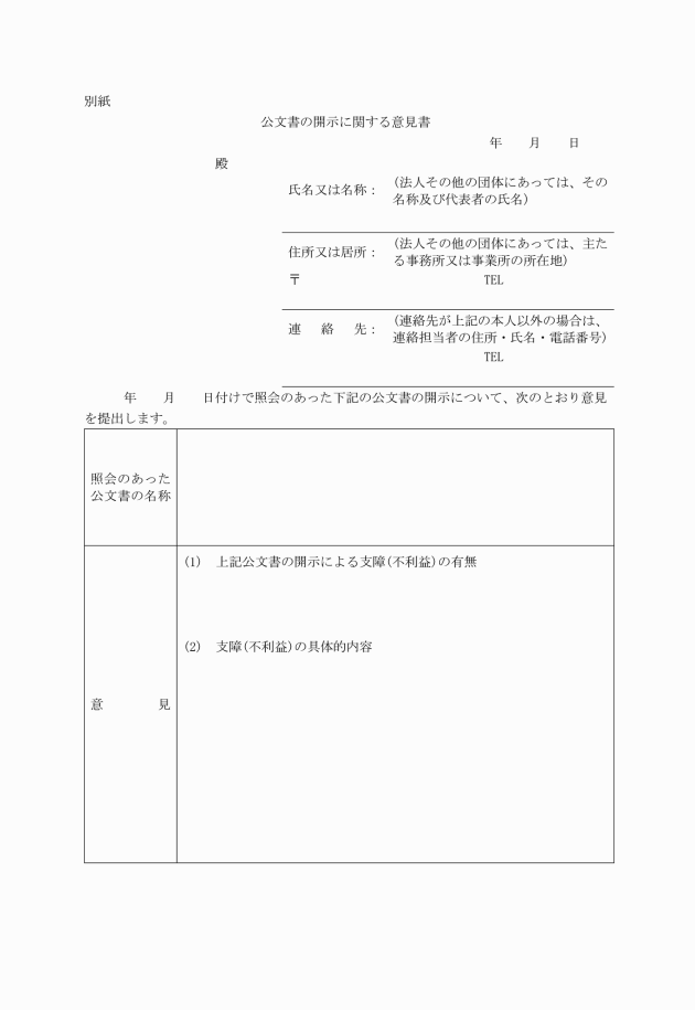 (公文書開示請求に関する意見照会書等)