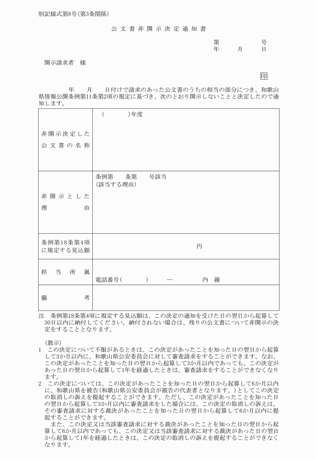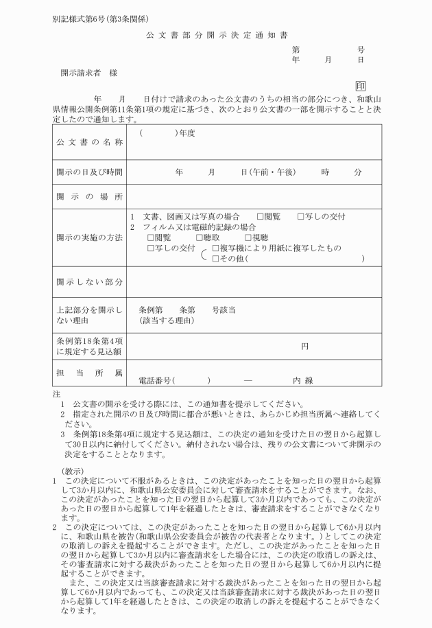 3 開示の申出を受けた公安委員会又は警察本部長は、開示の申出を行った者に公文書任意開示回答書(別記様式第22号)により通知する。