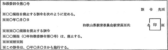 8 特定の和歌山県教育委員会の所管に属する学校に対して発する訓令 | 何学校 | 当該学校名を表示する。 |