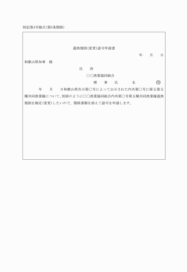 第4条 漁業法第5条第1項の規定による代表者の届出は、別記第1号様式によるものとする。