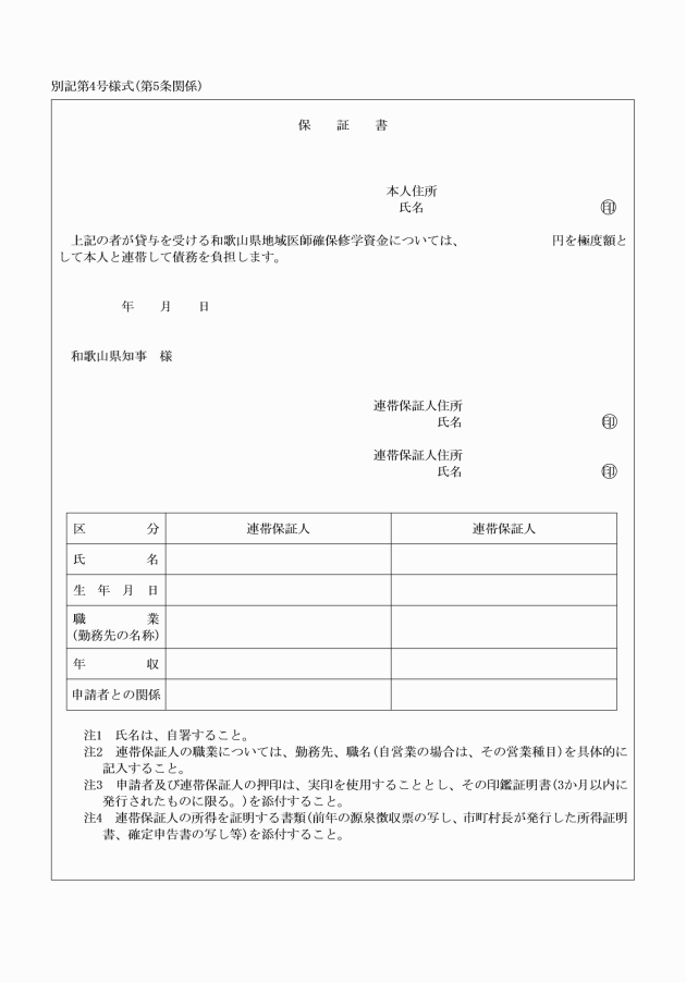 (3) 連帯保証人となるべき者の保証書(別記第4号様式)