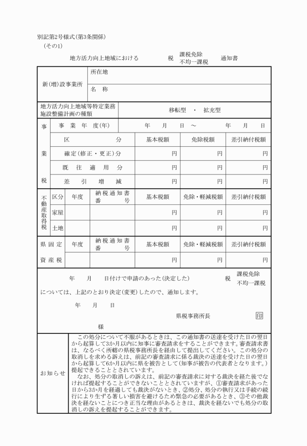 ○和歌山県地方活力向上地域における県税の特別措置に関する条例施行規則