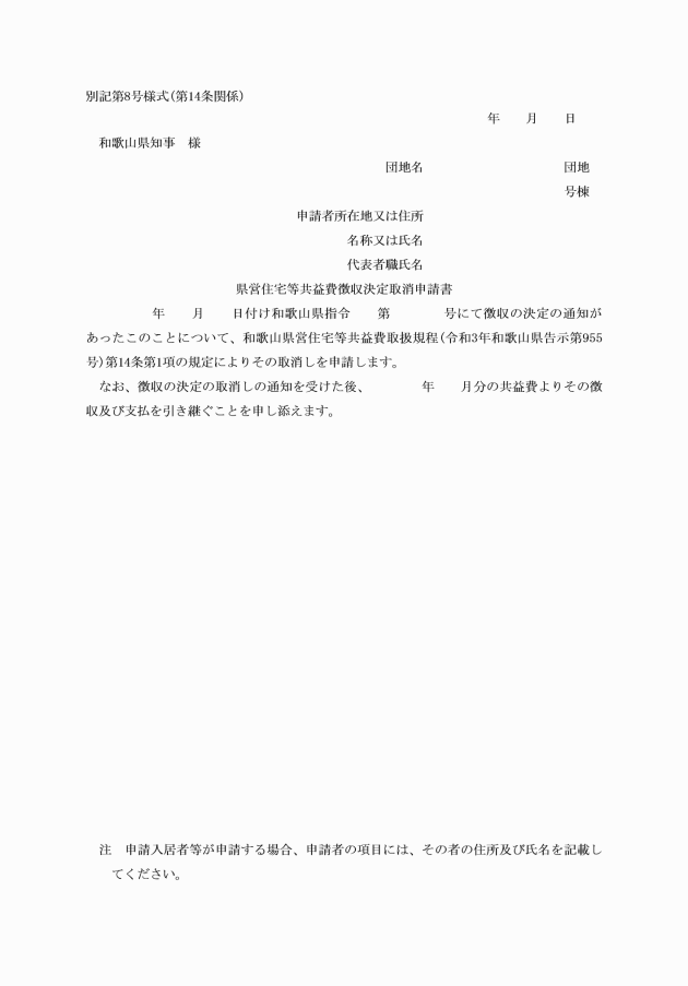 (3) 和歌山県営住宅条例施行規則(平成9年和歌山県規則第95号。以下「規則」という。)第17条の2第3号又は第4号の費用を知事が徴収する共益費に含む場合は、当該費用について、次に掲げる事項を記載した書類