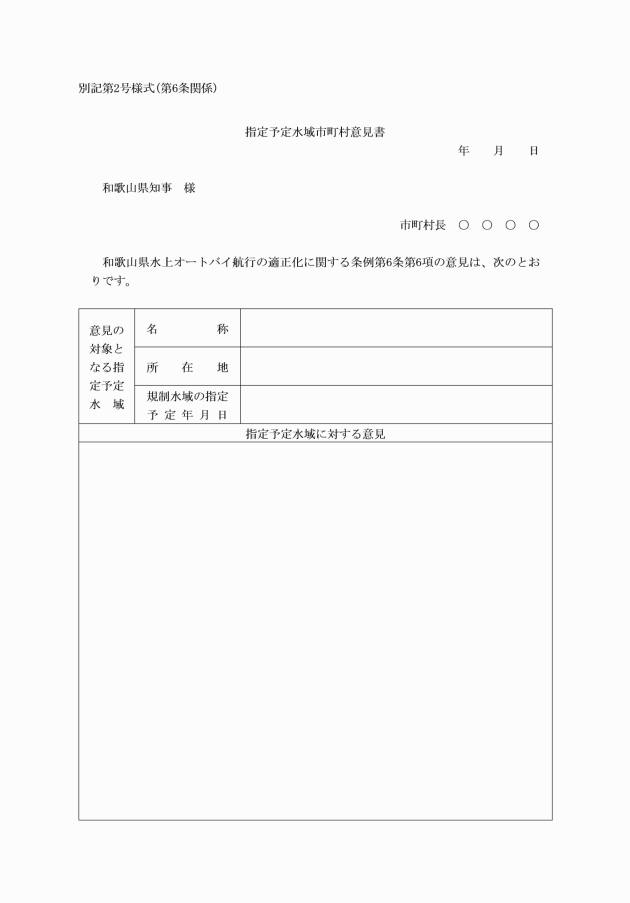 ○和歌山県水上オートバイ航行の適正化に関する条例施行規則