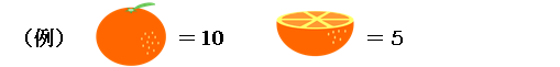 - 図柄ひとつに満たない数は、図柄を小さくするか、半分に切った絵にして表します。