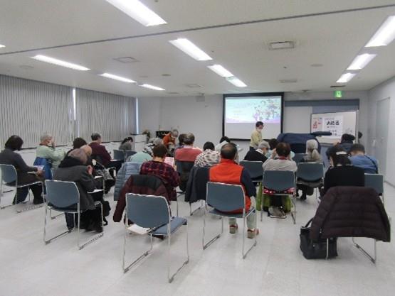 上映後に感想などを話し合う交流会には、10名の方が参加してくださいました。飲み物を飲みながらの交流会は、40分間では足りないくらい皆さんがたくさん感想を話してくださり、和気あいあいとしつつも、エンディングノートや墓じまい、遺産分割など終活について参考になる様々なお話を聞くことのできる有意義な時間となりました。交流会参加者のアンケートからは「他の方の終活への考え方や取り組みを知り得ることができて良かった。」「参加された方からいっぱい良い話が聞けて良かったです。」「たいへん参考になりました。ありがとうございます。」等の感想をいただきました。