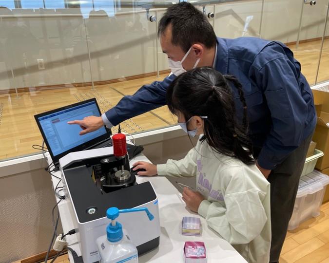 - 今年度は新たにFT-IR(マイクロプラスチックの種類を調べる装置)を使ってマイクロプラスチックや身の回りのプラスチック製品の種類を調べる体験をしてもらいました。