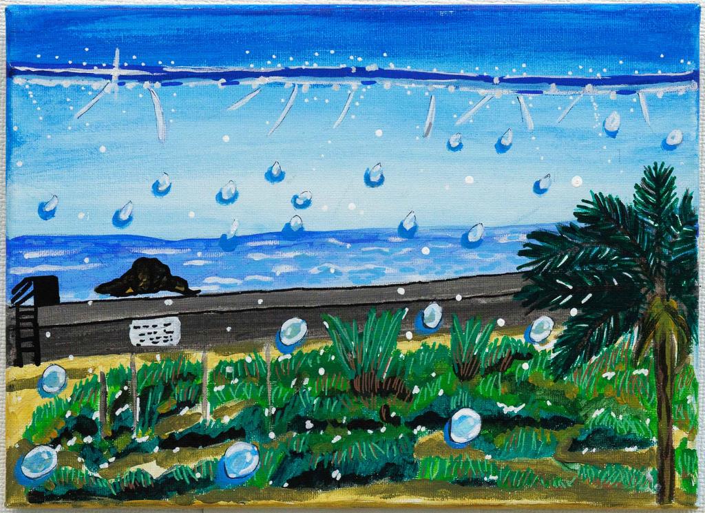 ホースのシャワーで涼感を味わって貰える様な作品になる様描いたつもりです。 |
