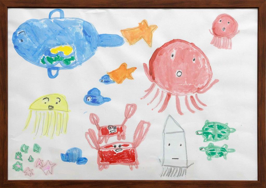沢山の花火にとても喜んだヒトデさんを描きました。 |