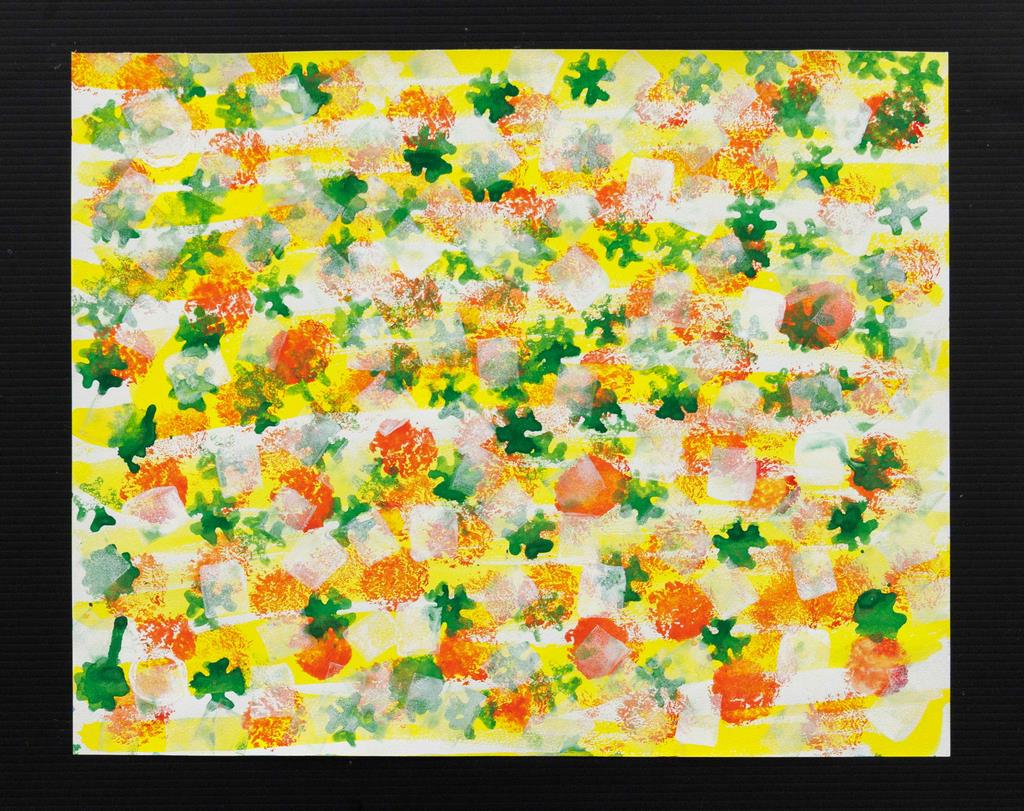パステルを使って明るく前向きなイメージを持つ黄色とオレンジで描きました。夏の清涼を追求しました。 |