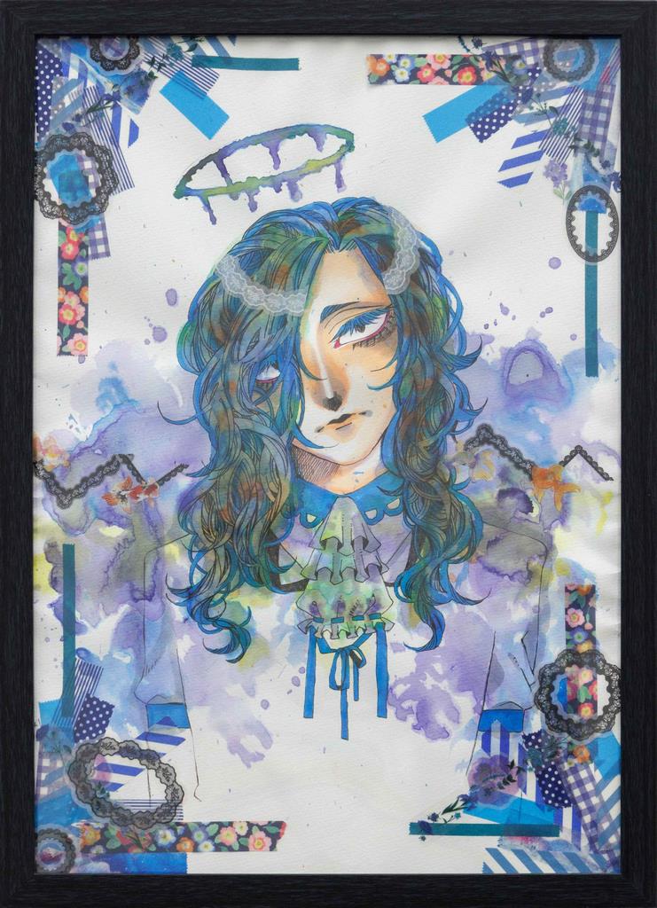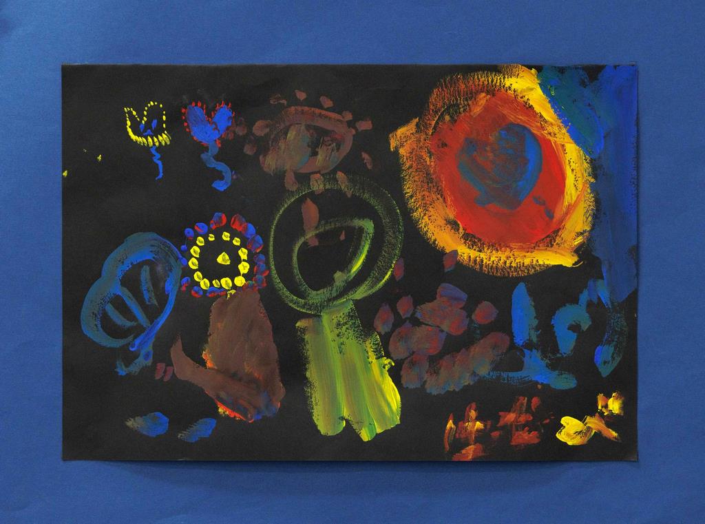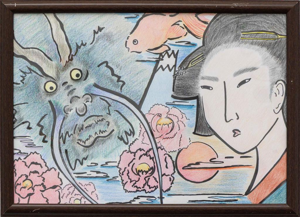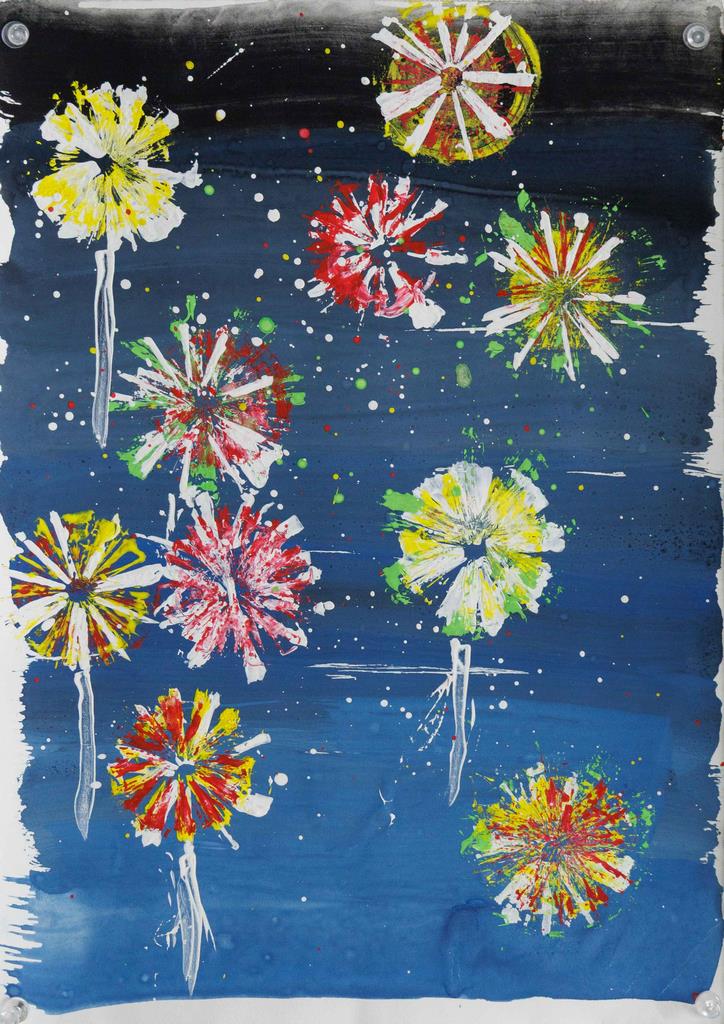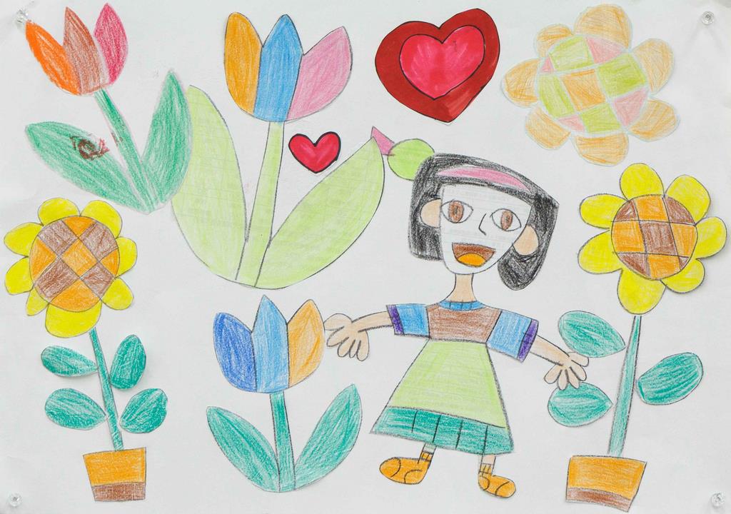 カラフルなお花たちと女の子を描きました。すてきな作品に仕上がりました。 |