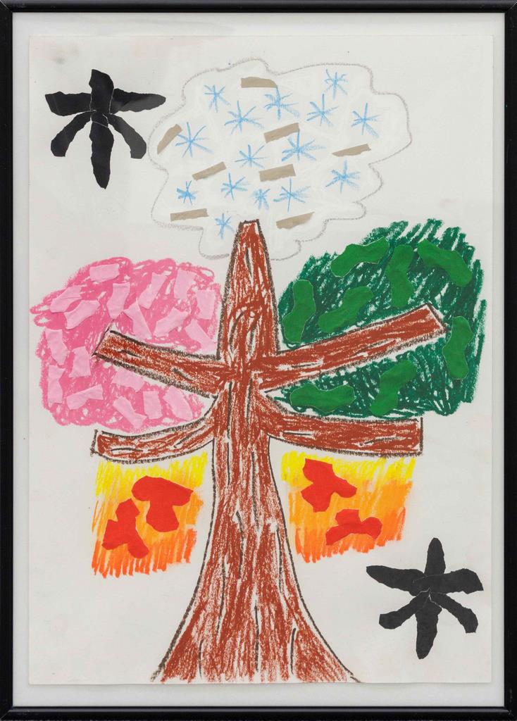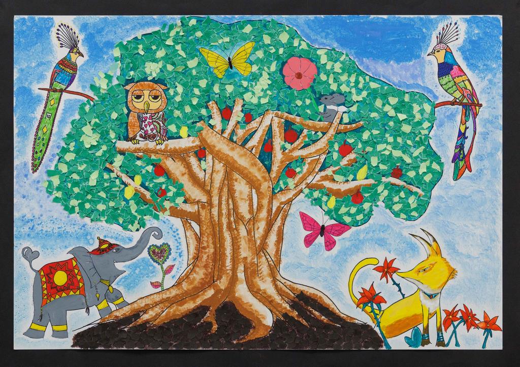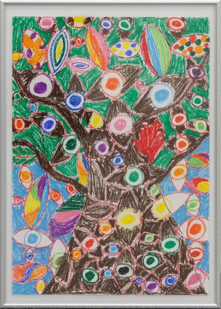 樹に集まる様々な仲間たち。作業所の未来を想像して描きました。 |