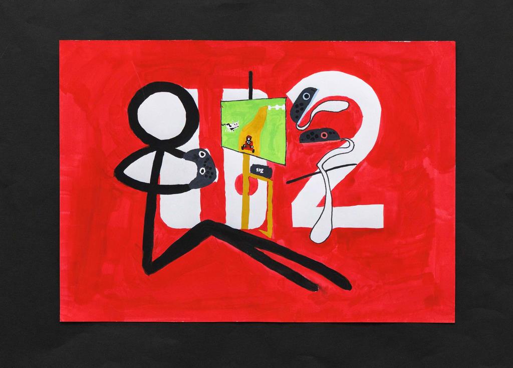 夏休みに『遊』んだゲームをイメージしました。ゲーム機のコントローラーやモニターを漢字に見立ててちょい足ししました。 |
