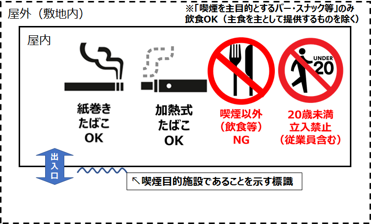 ※「喫煙を主目的とするバー・スナック等」に限り、喫煙目的室内での飲食等のサービスの提供が可能となります。