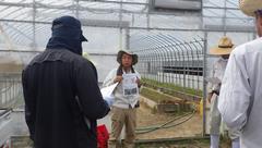 ・ナスの主枝を3本決め、紐を株元に結びけ。 - ホウレンソウの収穫・出荷調整説明(6月27日)