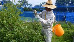 - ウメの収穫・出荷調整、ぶどうの摘粒処理、ブルーベリー枝吊り、キウイフルーツの誘引、電柵設置等