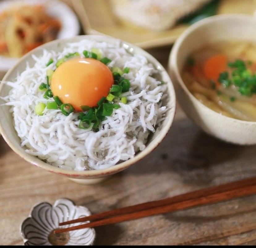 しらす女将の生ふりかけ(生梅しらす、旨味胡麻油)、釜揚げしらす、しらすのアヒージョ、梅ちりめん |