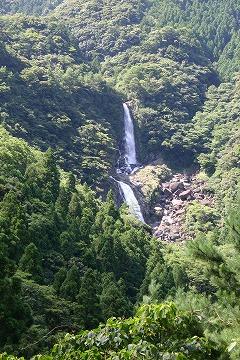 新宮市熊野川町田長谷、熊野川の支流、水量が豊かで周囲も天然林に覆われている渓谷にある2段の秘境の大滝です。 その昔、この滝に鼻の白いうなぎが住んでいたことから名付けられたと言われています。 水量が豊かで周囲も天然林に覆われているこの滝は一の滝が落差45m、一の滝の上にある二の滝が38m。合計83mの秘境の大滝です。
