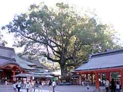 那智の大樟(おおくす)は熊野那智大社の境内にあって、高さ27m、幹周り9.3m、枝張り南北25m、樹齢800年以上を数え堂々とそびえ立っています。