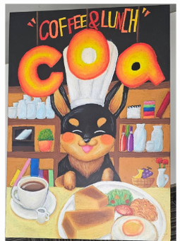 ※チョークアートとは、黒板に色鮮やかなオイルパステルでイラストや文字を描いた商業美術です。オーストラリアをはじめ海外で人気が高く、最近では日本でも店舗の看板などで多く見られるようになってきています。