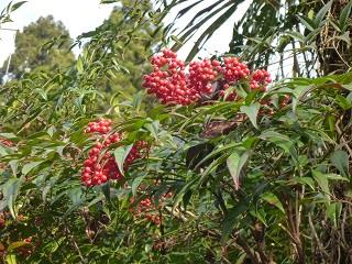ナンテンは、その名から「”難”を転じる」に通じることから縁起の良い物として、主に正月用の切り枝や門松に使われています。また、実は生け花の他、のど飴の原料としても利用されます。