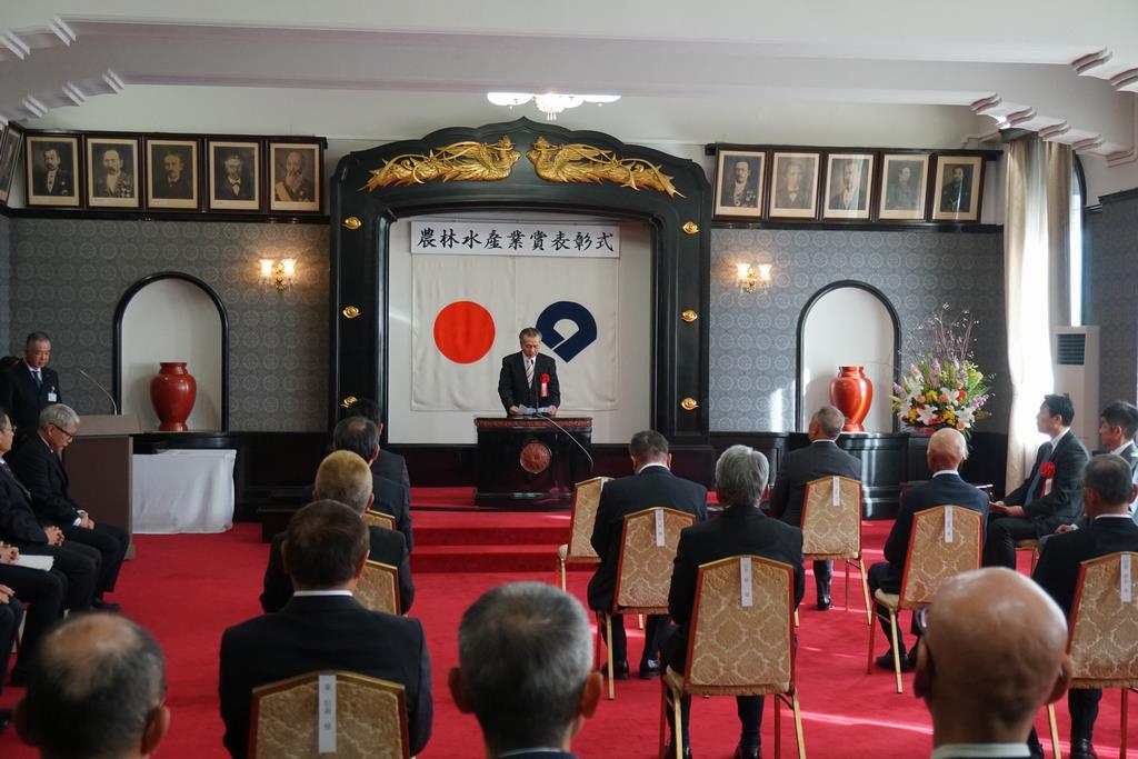 令和7年度農林水産業賞表彰式が和歌山県庁の正庁で開催され、県議会からは秋月史成副議長、農林水産委員会山家敏宏委員長が来賓として出席しました。