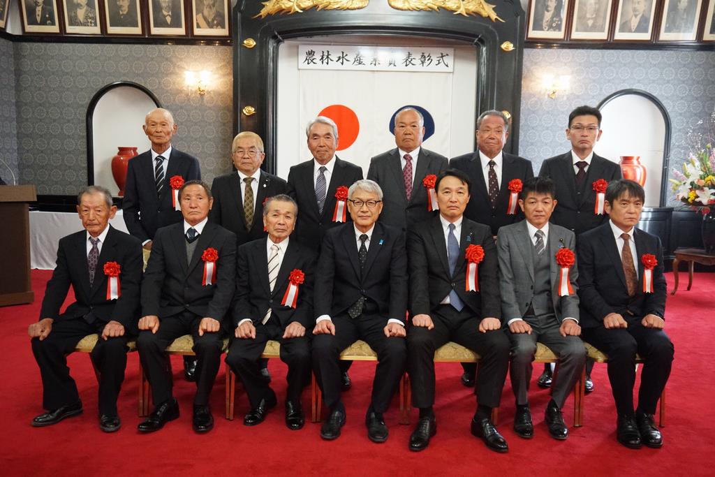 秋月副議長は、「豊富な知識と多様な経験を活かし、本県の農林水産業の発展に多大な貢献をされた、その長年にわたる御労苦とこれまでの御功績に対し、深く敬意を表すとともに、心からお祝い申し上げます。県議会としても本県の主要産業である農林水産業を次の世代に確実に継承していくため、県当局とともに様々な施策に取り組んでまいります。」と祝辞を述べました。