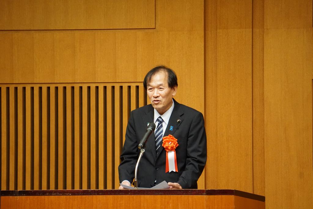岩田議長は、「障害のある方が社会生活を営む上での様々な障壁をなくし、すべての人が、主体的に社会参加し、共に支えあい、豊かに暮らせる「まちづくり」を実現することが非常に重要です。県議会としても、関係機関との緊密な連携のもと、さらなる障害者福祉の向上、また、すべての人々が互いに支えあう地域社会の実現に向け、しっかりと取り組んでまいります。」と祝辞を述べました。