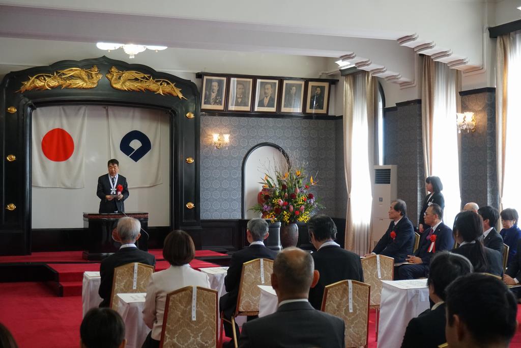 和歌山県文化表彰式が和歌山県庁の正庁で開催され、県議会からは岩田弘彦議長、総務委員会 玄素彰人委員長が来賓として出席しました。