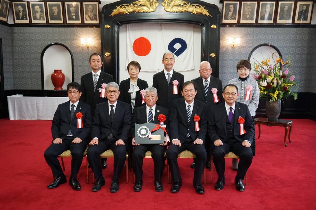 令和7年度和歌山県名匠表彰式が和歌山県庁の正庁で開催され、県議会からは、岩田弘彦議長と総務委員会 玄素彰人委員長が来賓として出席しました。岩田議長は祝辞の中で、「優れた技のみならず、後継者への技術継承や産業の活性化による地域の振興にも熱心に取り組まれ、まさに県が推進するものづくりのあるべき姿を体現されていることに心より敬意を表します。どうかこれからも、更なる研鑽を重ねられ、本県の技術文化に、なお一層のお力添えを賜りますようお願い申し上げます。」と述べました。