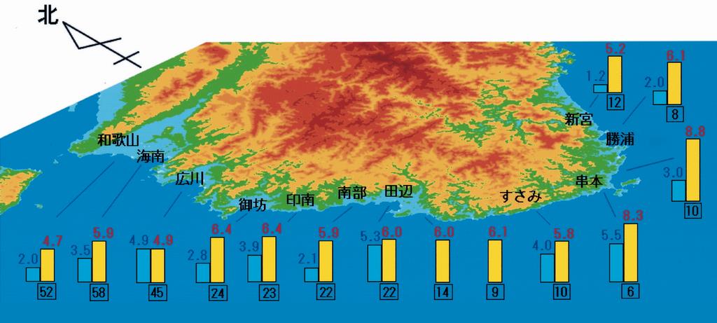 025-最大津波高と第1波ピーク到着時間(南海・東南海・東海地震同時発生の場合)
