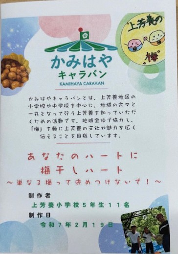 地域の人々の梅産業への願いを知り、広報活動としての梅の配布を通して、地域のすばらしさを発信しようとする態度を培う。