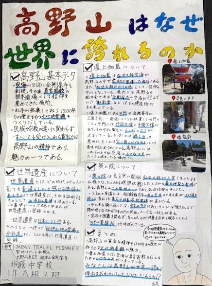 現地研修後、高野山について関心を持ったことを探究活動として自分たちで調べ、将来の自己実現や進路実現に繋げる。