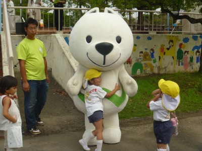 きしゅう君、ちゅういくん、和歌山のおばちゃんと一緒にくす玉を割ったワン!!