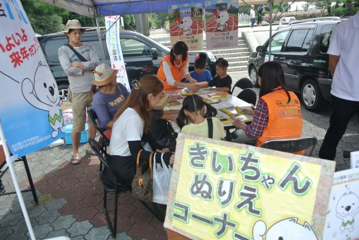きいちゃんは、扇ケ浜公園カッパークに設営された紀の国わかやま国体・紀の国わかやま大会ブースでPR!