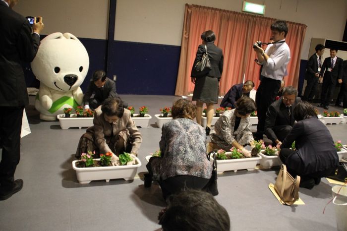 県民運動の一つである、「花いっぱい運動」の紹介も行われたワン!