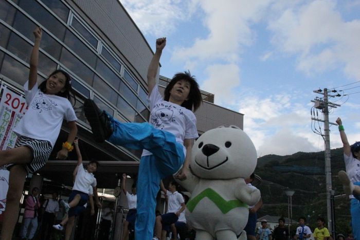 ステージでは、紀の国わかやま国体・紀の国わかやま大会のイメージソングである「明日へと」の曲に合わせたきいちゃんダンスを宮原小学校のみんなが踊ってくれたワン(*`ω´)